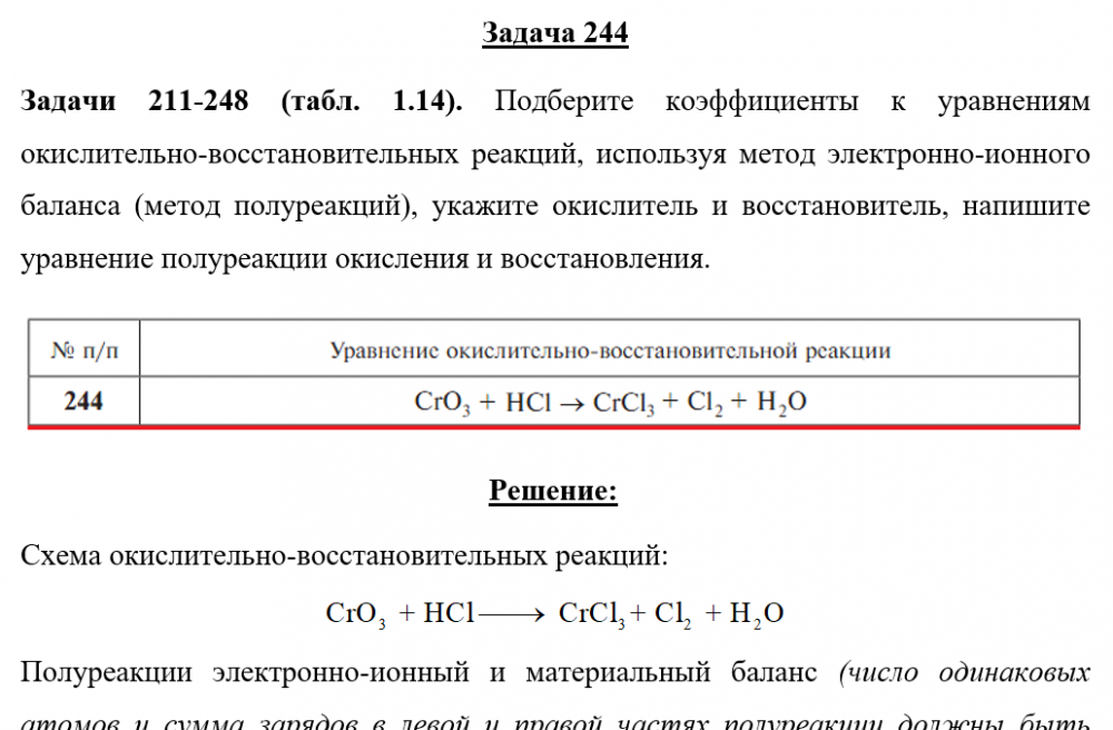 Для студентов по предмету ХимияЗадача 244 - Подберите коэффициенты к уравнениям окислительно-восстановительных реакций, используя метод электронно-ионного баланса (метод полуреакцийЗадача 244 - Подберите коэффициенты к уравнениям окислительно-восстановительных реакций, используя метод электронно-ионного баланса (метод полуреакций