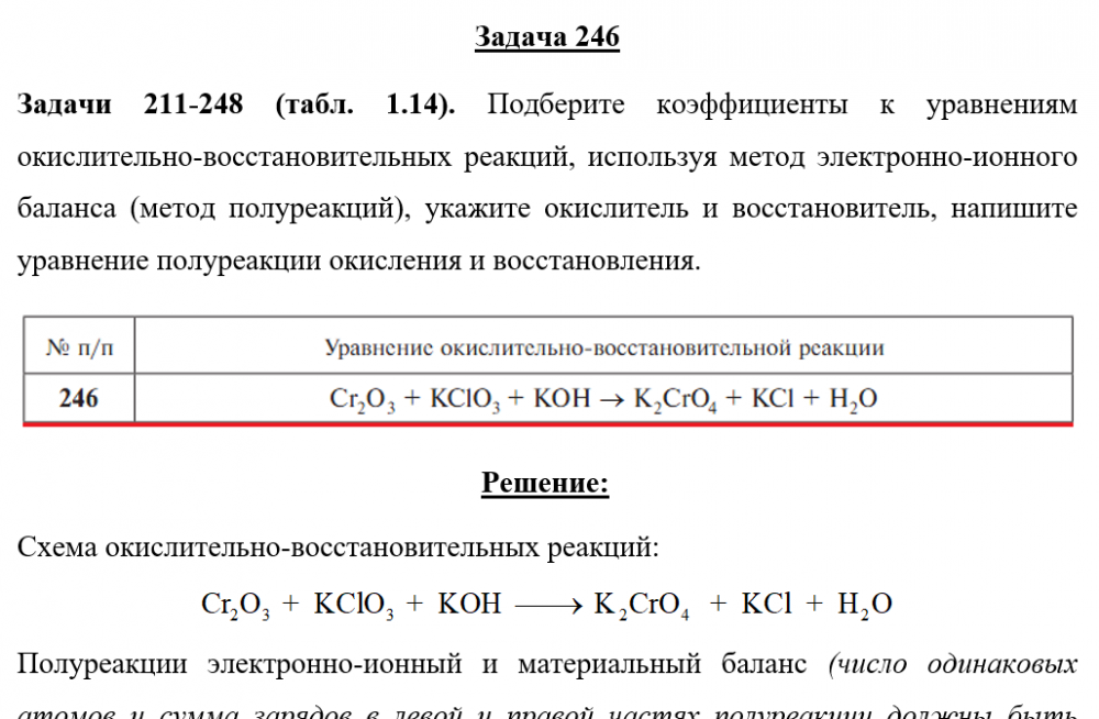 Для студентов по предмету ХимияЗадача 246 - Подберите коэффициенты к уравнениям окислительно-восстановительных реакций, используя метод электронно-ионного баланса (метод полуреакцийЗадача 246 - Подберите коэффициенты к уравнениям окислительно-восстановительных реакций, используя метод электронно-ионного баланса (метод полуреакций