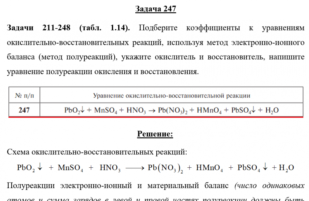 Для студентов по предмету ХимияЗадача 247 - Подберите коэффициенты к уравнениям окислительно-восстановительных реакций, используя метод электронно-ионного баланса (метод полуреакцийЗадача 247 - Подберите коэффициенты к уравнениям окислительно-восстановительных реакций, используя метод электронно-ионного баланса (метод полуреакций