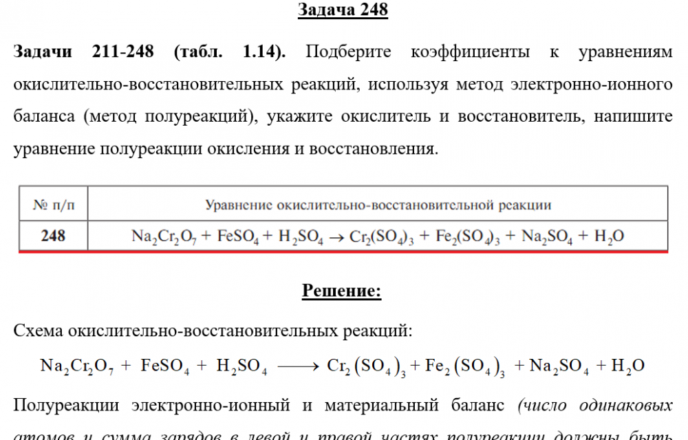 Для студентов по предмету ХимияЗадача 248 - Подберите коэффициенты к уравнениям окислительно-восстановительных реакций, используя метод электронно-ионного баланса (метод полуреакцийЗадача 248 - Подберите коэффициенты к уравнениям окислительно-восстановительных реакций, используя метод электронно-ионного баланса (метод полуреакций