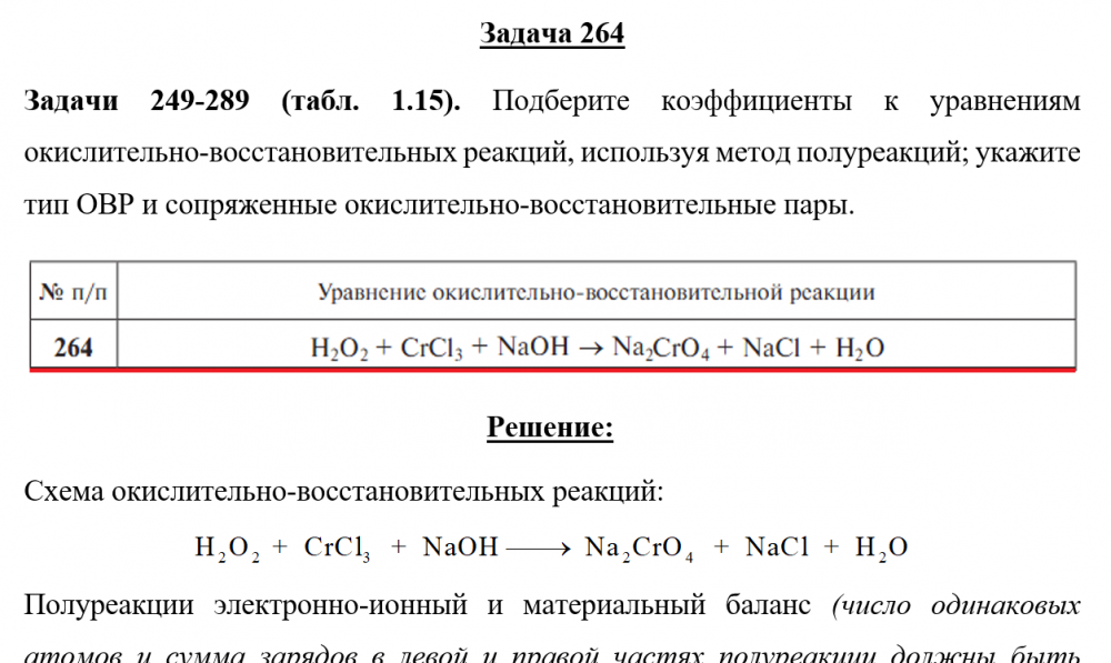 Для студентов по предмету ХимияЗадача 264 - Подберите коэффициенты к уравнениям окислительно-восстановительных реакций, используя метод полуреакций; укажите тип ОВР и сопряженные окЗадача 264 - Подберите коэффициенты к уравнениям окислительно-восстановительных реакций, используя метод полуреакций; укажите тип ОВР и сопряженные ок