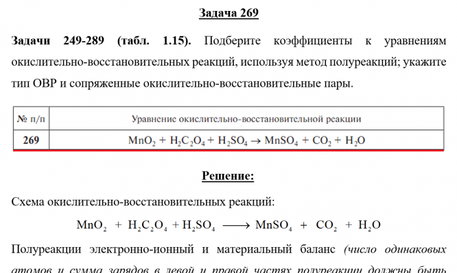 Задача 269 - Подберите коэффициенты к уравнениям окислительно-восстановительных реакций, используя метод полуреакций; укажите тип ОВР и сопряженные окислительно-восстановительные пары.