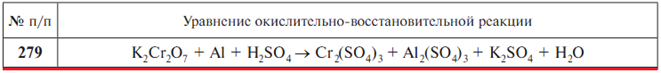 Задачи 249-289 (табл. 1.15). Подберите коэффициенты к уравнениям окислительно-восстановительных реакций, используя метод полуреакций; укажите тип ОВР и сопряженные окислительно-восстановительные пары..