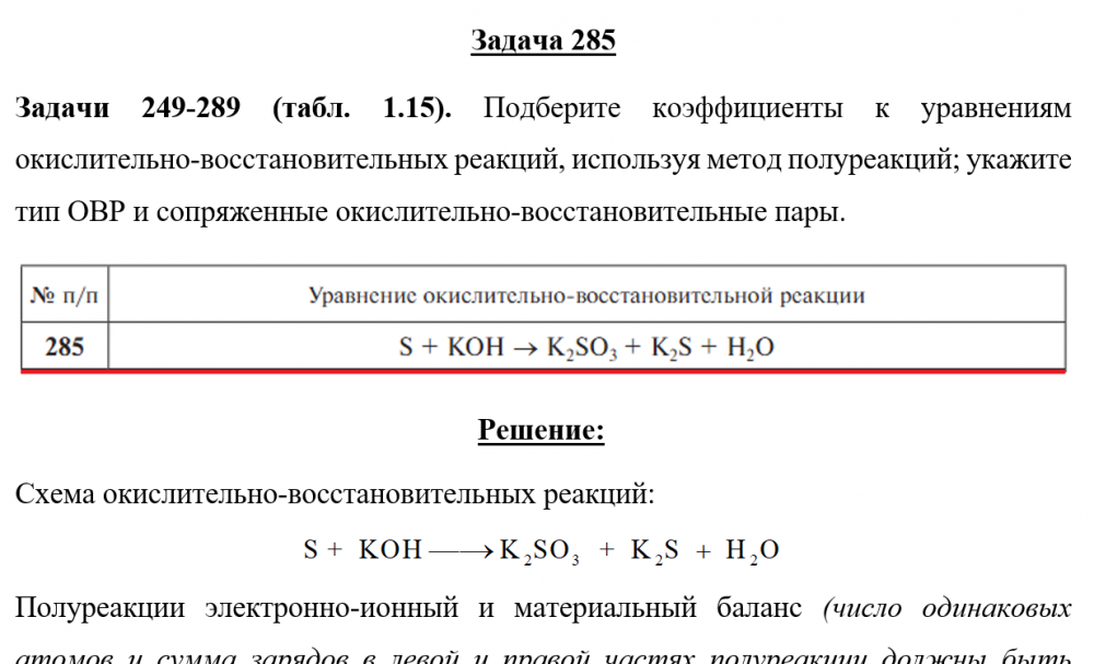 Задача 285 - Подберите коэффициенты к уравнениям окислительно-восстановительных реакций, используя метод полуреакций; укажите тип ОВР и сопряженные окислительно-восстановительные пары.