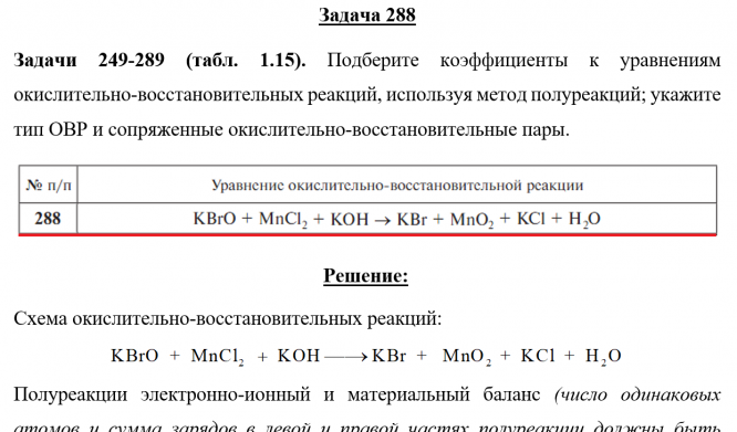 Задача 288 - Подберите коэффициенты к уравнениям окислительно-восстановительных реакций, используя метод полуреакций; укажите тип ОВР и сопряженные окислительно-восстановительные пары.
