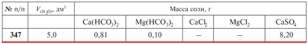 Задача 347 - Рассчитайте значения временной, постоянной и общей жесткости по известной массе солей, растворенных в объеме воды V. Укажите, пригодна ли вода данной жесткости для использования в бытовых целях. Примечание. 1°Ж = 1 ммоль⋅экв/ дм3 = 1 ммо