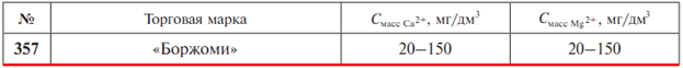 Задача 357 - Рассчитайте значение общей жесткости по приведенным в таблице массовым концентрациям Смасс ионов Ca2+ и Mg2+; укажите класс жесткости питьевой или природной минеральной воды известных торговых марок.