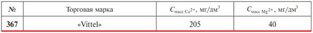 Задача 367 - Рассчитайте значение общей жесткости по приведенным в таблице массовым концентрациям Смасс ионов Ca2+ и Mg2+; укажите класс жесткости питьевой или природной минеральной воды известных торговых марок.