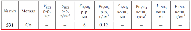 Задачи 523-542 (табл. 1.33). Напишите уравнение реакции взаимодействия металла с кислотой. Рассчитайте массу вступившего в реакцию металла и объем выделившегося газа (н.у.) по известному объему V вступившей в реакцию кислоты и ее плотности ρ. Примечание. Обратите внимание на концентрацию кислоты!.