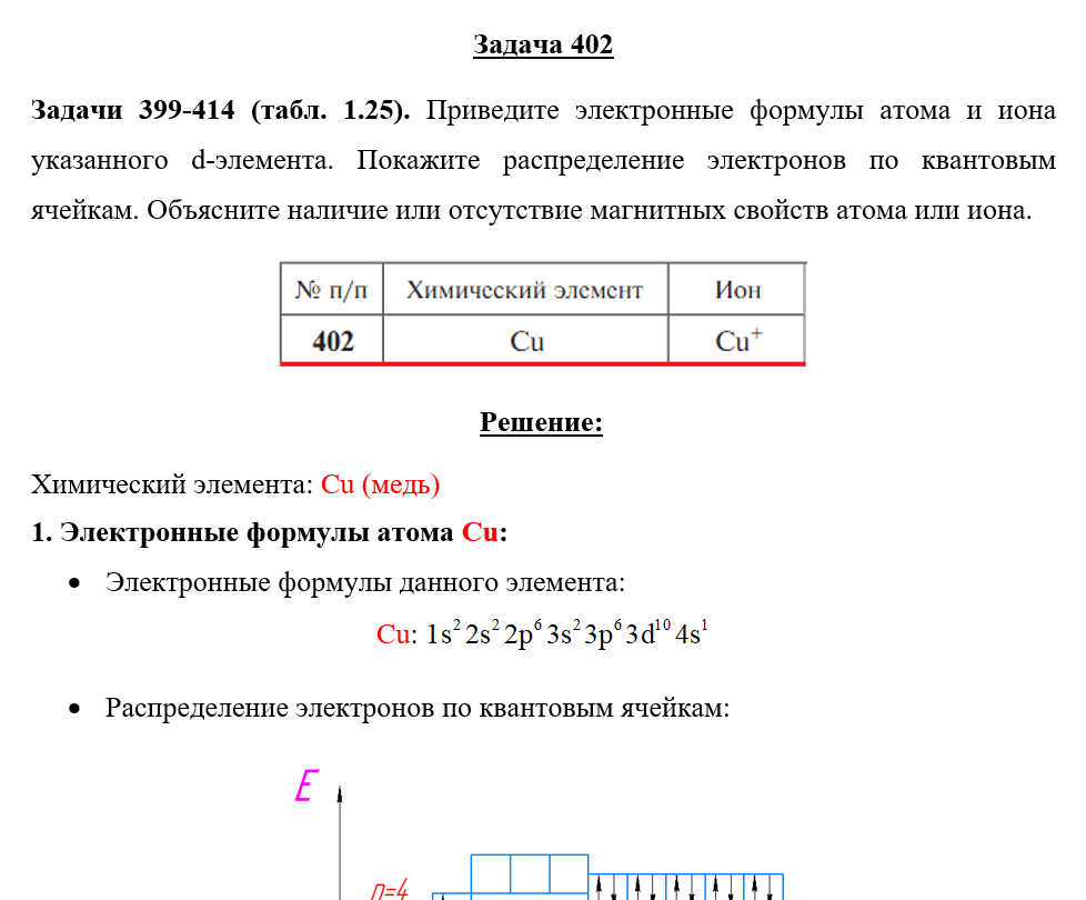 Для студентов по предмету ХимияЗадача 402 - Приведите электронные формулы атома и иона указанного d-элемента. Покажите распределение электронов по квантовым ячейкам. Объясните наличЗадача 402 - Приведите электронные формулы атома и иона указанного d-элемента. Покажите распределение электронов по квантовым ячейкам. Объясните налич