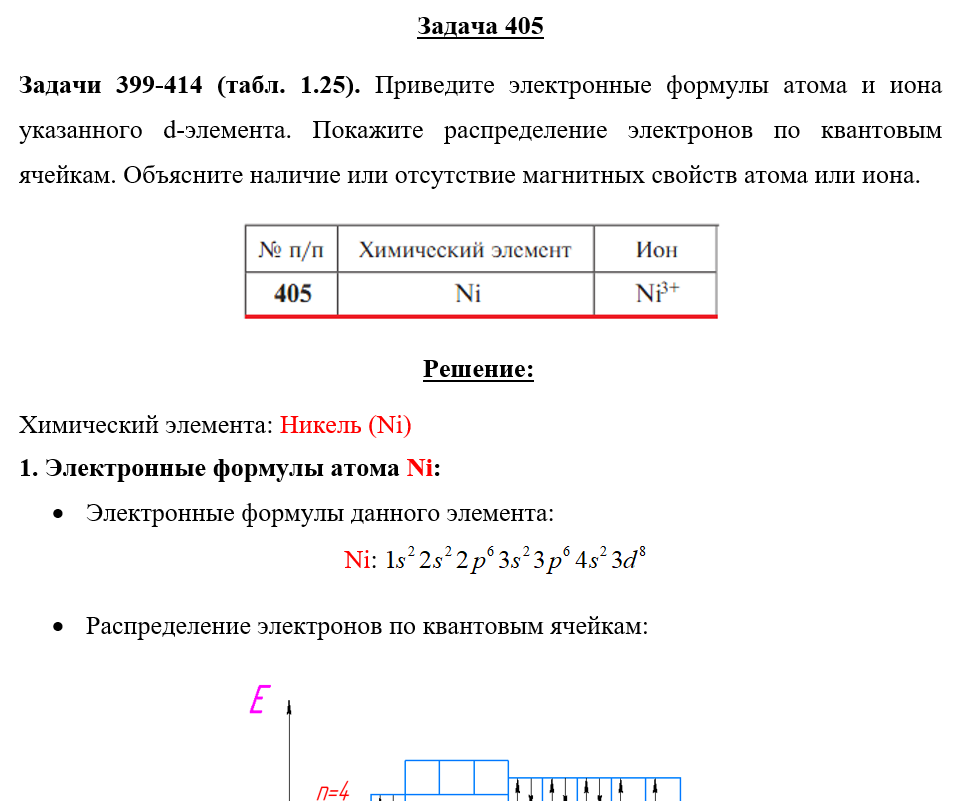 Для студентов по предмету ХимияЗадача 405 - Приведите электронные формулы атома и иона указанного d-элемента. Покажите распределение электронов по квантовым ячейкам. Объясните наличЗадача 405 - Приведите электронные формулы атома и иона указанного d-элемента. Покажите распределение электронов по квантовым ячейкам. Объясните налич