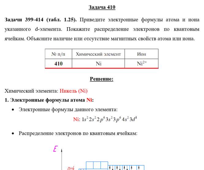 Для студентов по предмету ХимияЗадача 410 - Приведите электронные формулы атома и иона указанного d-элемента. Покажите распределение электронов по квантовым ячейкам. Объясните наличЗадача 410 - Приведите электронные формулы атома и иона указанного d-элемента. Покажите распределение электронов по квантовым ячейкам. Объясните налич