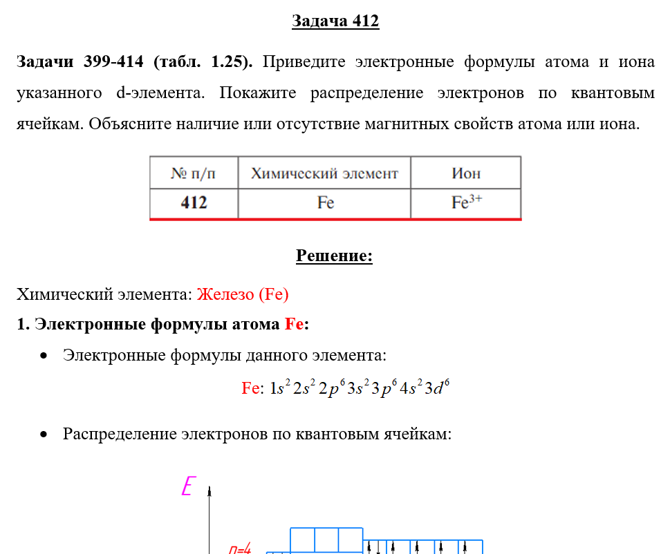 Для студентов по предмету ХимияЗадача 412 - Приведите электронные формулы атома и иона указанного d-элемента. Покажите распределение электронов по квантовым ячейкам. Объясните наличЗадача 412 - Приведите электронные формулы атома и иона указанного d-элемента. Покажите распределение электронов по квантовым ячейкам. Объясните налич