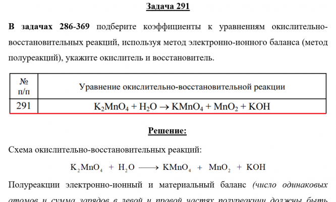 Для студентов по предмету ХимияЗадача 291 - подберите коэффициенты к уравнениям окислительно-восстановительных реакций, используя метод электронно-ионного баланса (метод полуреакцийЗадача 291 - подберите коэффициенты к уравнениям окислительно-восстановительных реакций, используя метод электронно-ионного баланса (метод полуреакций