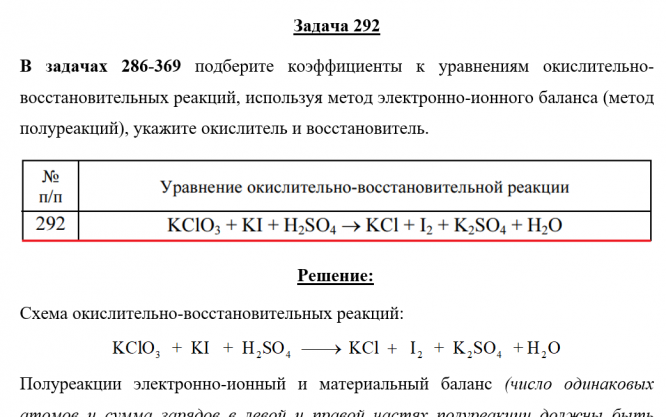 Задача 292 - подберите коэффициенты к уравнениям окислительно-восстановительных реакций, используя метод электронно-ионного баланса (метод полуреакций), укажите окислитель и восстановитель.