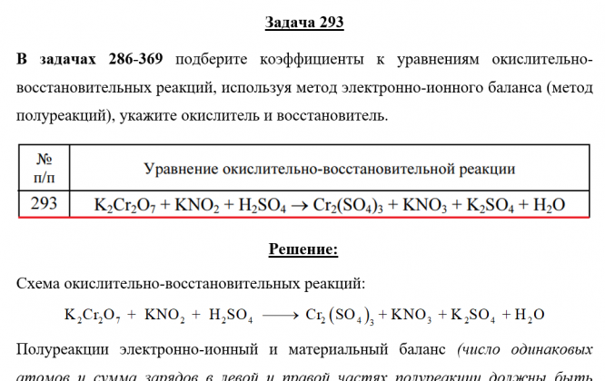 Задача 293 - подберите коэффициенты к уравнениям окислительно-восстановительных реакций, используя метод электронно-ионного баланса (метод полуреакций), укажите окислитель и восстановитель.