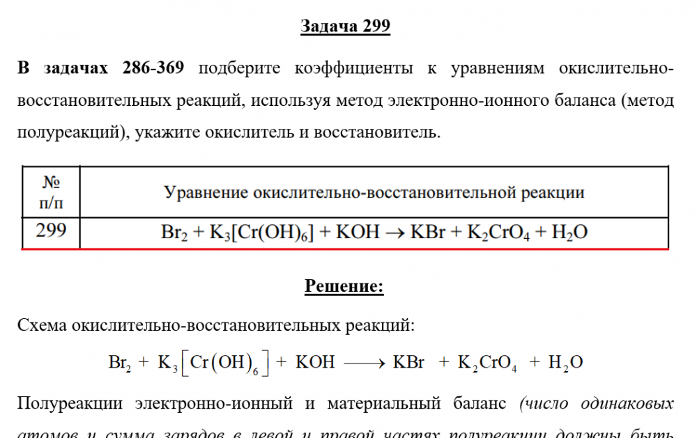 Для студентов по предмету ХимияЗадача 299 - подберите коэффициенты к уравнениям окислительно-восстановительных реакций, используя метод электронно-ионного баланса (метод полуреакцийЗадача 299 - подберите коэффициенты к уравнениям окислительно-восстановительных реакций, используя метод электронно-ионного баланса (метод полуреакций