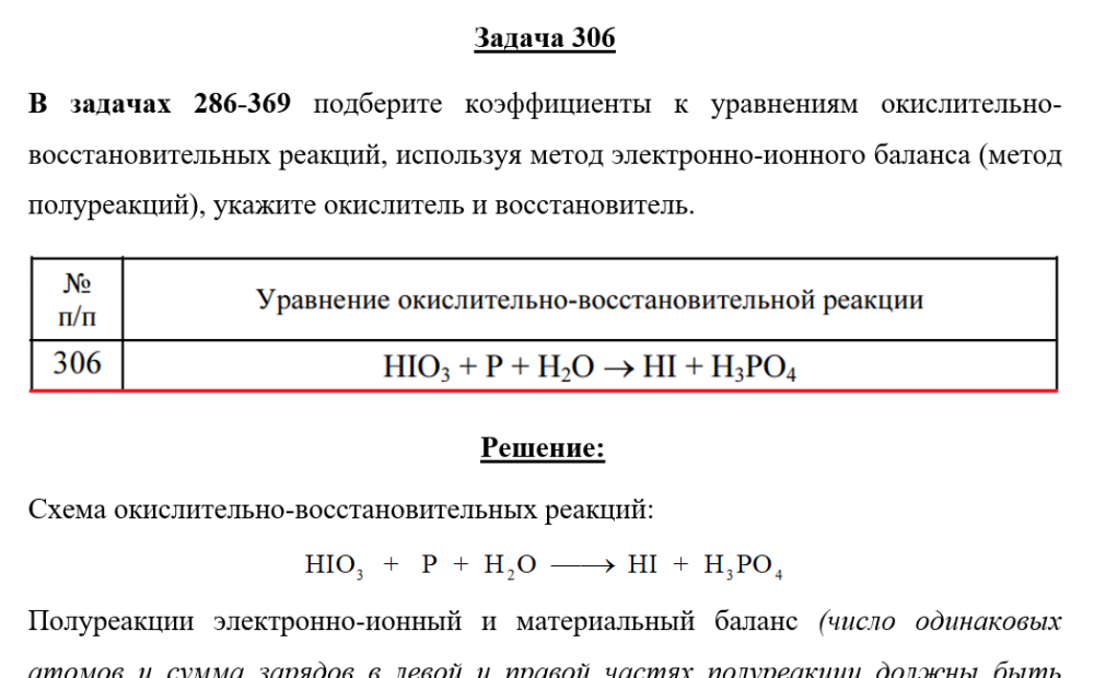 Для студентов по предмету ХимияЗадача 306 - подберите коэффициенты к уравнениям окислительно-восстановительных реакций, используя метод электронно-ионного баланса (метод полуреакцийЗадача 306 - подберите коэффициенты к уравнениям окислительно-восстановительных реакций, используя метод электронно-ионного баланса (метод полуреакций