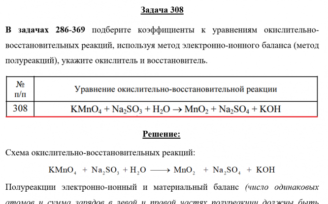 Для студентов по предмету ХимияЗадача 308 - подберите коэффициенты к уравнениям окислительно-восстановительных реакций, используя метод электронно-ионного баланса (метод полуреакцийЗадача 308 - подберите коэффициенты к уравнениям окислительно-восстановительных реакций, используя метод электронно-ионного баланса (метод полуреакций
