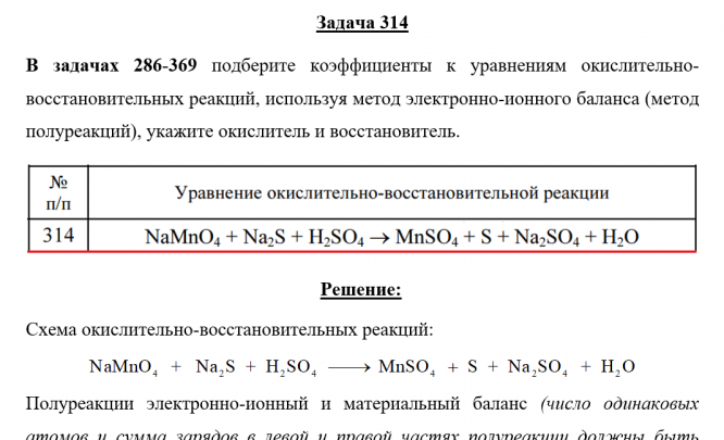 Для студентов по предмету ХимияЗадача 314 - подберите коэффициенты к уравнениям окислительно-восстановительных реакций, используя метод электронно-ионного баланса (метод полуреакцийЗадача 314 - подберите коэффициенты к уравнениям окислительно-восстановительных реакций, используя метод электронно-ионного баланса (метод полуреакций