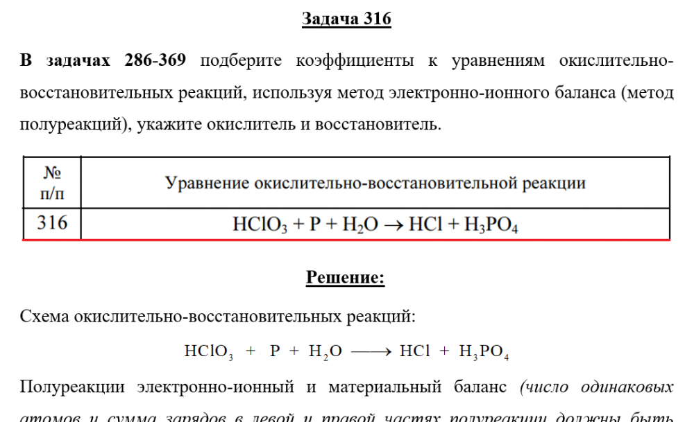 Для студентов по предмету ХимияЗадача 316 - подберите коэффициенты к уравнениям окислительно-восстановительных реакций, используя метод электронно-ионного баланса (метод полуреакцийЗадача 316 - подберите коэффициенты к уравнениям окислительно-восстановительных реакций, используя метод электронно-ионного баланса (метод полуреакций