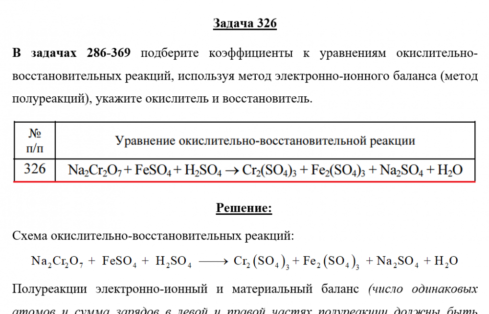 Для студентов по предмету ХимияЗадача 326 - подберите коэффициенты к уравнениям окислительно-восстановительных реакций, используя метод электронно-ионного баланса (метод полуреакцийЗадача 326 - подберите коэффициенты к уравнениям окислительно-восстановительных реакций, используя метод электронно-ионного баланса (метод полуреакций