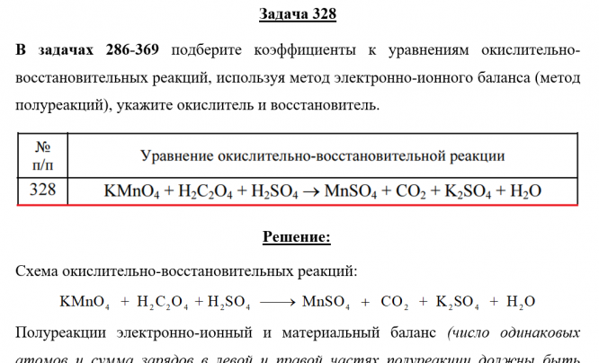 Для студентов по предмету ХимияЗадача 328 - подберите коэффициенты к уравнениям окислительно-восстановительных реакций, используя метод электронно-ионного баланса (метод полуреакцийЗадача 328 - подберите коэффициенты к уравнениям окислительно-восстановительных реакций, используя метод электронно-ионного баланса (метод полуреакций