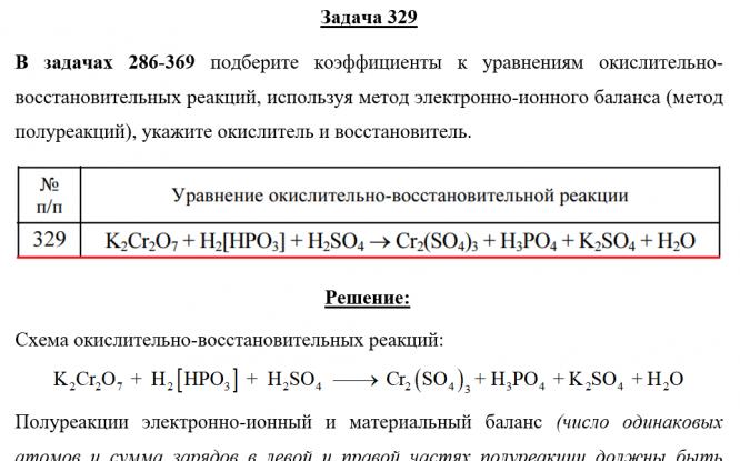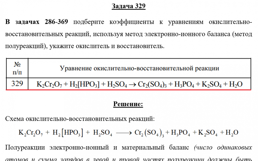 Для студентов по предмету ХимияЗадача 329 - подберите коэффициенты к уравнениям окислительно-восстановительных реакций, используя метод электронно-ионного баланса (метод полуреакцийЗадача 329 - подберите коэффициенты к уравнениям окислительно-восстановительных реакций, используя метод электронно-ионного баланса (метод полуреакций