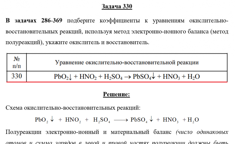 Для студентов по предмету ХимияЗадача 330 - подберите коэффициенты к уравнениям окислительно-восстановительных реакций, используя метод электронно-ионного баланса (метод полуреакцийЗадача 330 - подберите коэффициенты к уравнениям окислительно-восстановительных реакций, используя метод электронно-ионного баланса (метод полуреакций
