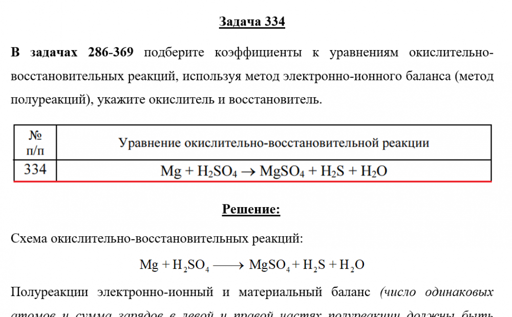 Для студентов по предмету ХимияЗадача 334 - подберите коэффициенты к уравнениям окислительно-восстановительных реакций, используя метод электронно-ионного баланса (метод полуреакцийЗадача 334 - подберите коэффициенты к уравнениям окислительно-восстановительных реакций, используя метод электронно-ионного баланса (метод полуреакций