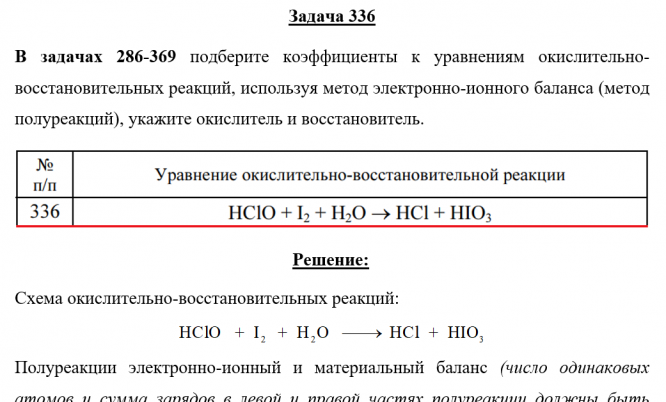 Для студентов по предмету ХимияЗадача 336 - подберите коэффициенты к уравнениям окислительно-восстановительных реакций, используя метод электронно-ионного баланса (метод полуреакцийЗадача 336 - подберите коэффициенты к уравнениям окислительно-восстановительных реакций, используя метод электронно-ионного баланса (метод полуреакций
