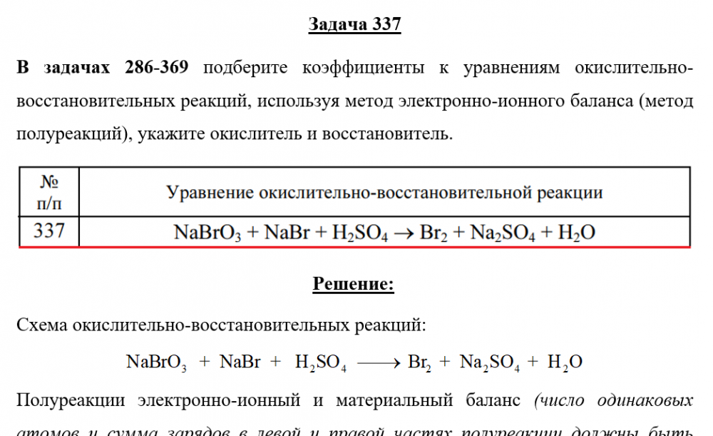 Для студентов по предмету ХимияЗадача 337 - подберите коэффициенты к уравнениям окислительно-восстановительных реакций, используя метод электронно-ионного баланса (метод полуреакцийЗадача 337 - подберите коэффициенты к уравнениям окислительно-восстановительных реакций, используя метод электронно-ионного баланса (метод полуреакций