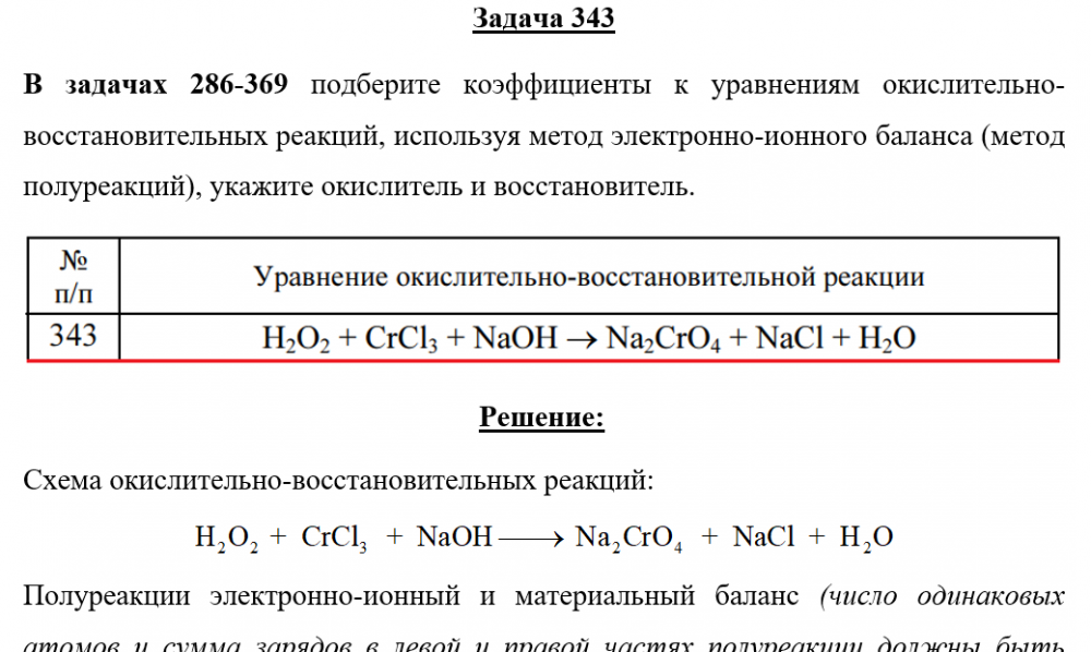 Для студентов по предмету ХимияЗадача 343 - подберите коэффициенты к уравнениям окислительно-восстановительных реакций, используя метод электронно-ионного баланса (метод полуреакцийЗадача 343 - подберите коэффициенты к уравнениям окислительно-восстановительных реакций, используя метод электронно-ионного баланса (метод полуреакций