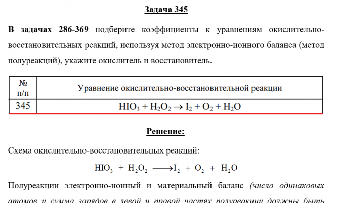 Для студентов по предмету ХимияЗадача 345 - подберите коэффициенты к уравнениям окислительно-восстановительных реакций, используя метод электронно-ионного баланса (метод полуреакцийЗадача 345 - подберите коэффициенты к уравнениям окислительно-восстановительных реакций, используя метод электронно-ионного баланса (метод полуреакций