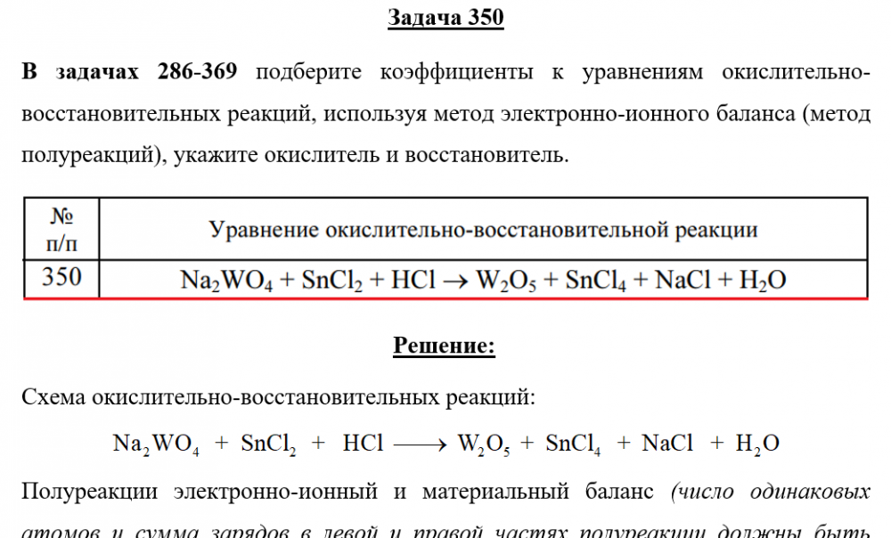 Для студентов по предмету ХимияЗадача 350 - подберите коэффициенты к уравнениям окислительно-восстановительных реакций, используя метод электронно-ионного баланса (метод полуреакцийЗадача 350 - подберите коэффициенты к уравнениям окислительно-восстановительных реакций, используя метод электронно-ионного баланса (метод полуреакций