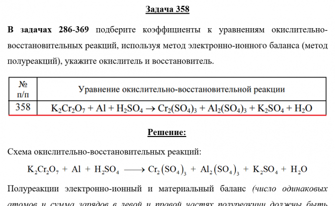 Для студентов по предмету ХимияЗадача 358 - подберите коэффициенты к уравнениям окислительно-восстановительных реакций, используя метод электронно-ионного баланса (метод полуреакцийЗадача 358 - подберите коэффициенты к уравнениям окислительно-восстановительных реакций, используя метод электронно-ионного баланса (метод полуреакций