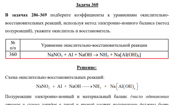 Главная » Учебные материалы » Химия » Решения задач » Несколько классов/семестров » Номер 360 » Задача 360 - подберите коэффициенты к уравнениям окислительно-восстановительных реакций, используя метод электронно-ионного баланса (метод полуреакций), укажите окислитель и восстановитель.