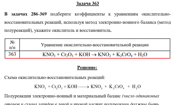 Для студентов по предмету ХимияЗадача 363 - подберите коэффициенты к уравнениям окислительно-восстановительных реакций, используя метод электронно-ионного баланса (метод полуреакцийЗадача 363 - подберите коэффициенты к уравнениям окислительно-восстановительных реакций, используя метод электронно-ионного баланса (метод полуреакций