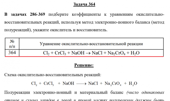 Главная » Учебные материалы » Химия » Решения задач » Несколько классов/семестров » Номер 364 » Задача 364 - подберите коэффициенты к уравнениям окислительно-восстановительных реакций, используя метод электронно-ионного баланса (метод полуреакций), укажите окислитель и восстановитель.
