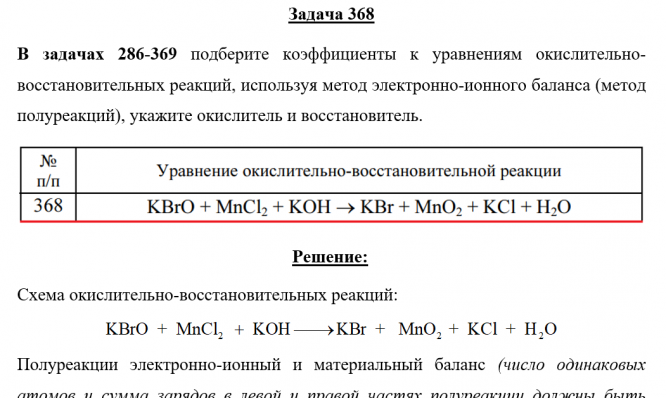 Для студентов по предмету ХимияЗадача 368 - подберите коэффициенты к уравнениям окислительно-восстановительных реакций, используя метод электронно-ионного баланса (метод полуреакцийЗадача 368 - подберите коэффициенты к уравнениям окислительно-восстановительных реакций, используя метод электронно-ионного баланса (метод полуреакций