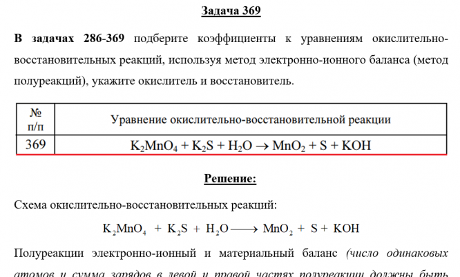 Для студентов по предмету ХимияЗадача 369 - подберите коэффициенты к уравнениям окислительно-восстановительных реакций, используя метод электронно-ионного баланса (метод полуреакцийЗадача 369 - подберите коэффициенты к уравнениям окислительно-восстановительных реакций, используя метод электронно-ионного баланса (метод полуреакций
