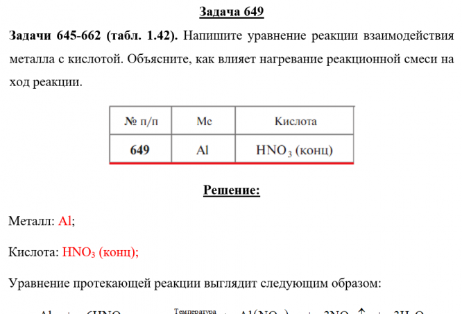 Задача 649 - Напишите уравнение реакции взаимодействия металла с кислотой. Объясните, как влияет нагревание реакционной смеси на ход реакции.