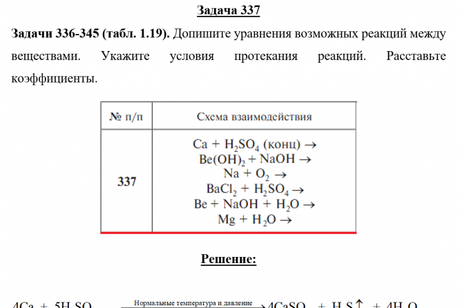 Для студентов по предмету ХимияЗадача 337 - Допишите уравнения возможных реакций между веществами. Укажите условия протекания реакций. Расставьте коэффициенты.Задача 337 - Допишите уравнения возможных реакций между веществами. Укажите условия протекания реакций. Расставьте коэффициенты.