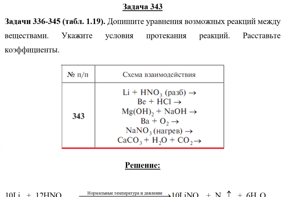 Для студентов по предмету ХимияЗадача 343 - Допишите уравнения возможных реакций между веществами. Укажите условия протекания реакций. Расставьте коэффициенты.Задача 343 - Допишите уравнения возможных реакций между веществами. Укажите условия протекания реакций. Расставьте коэффициенты.