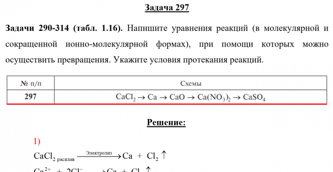 Задача 297 - Напишите уравнения реакций (в молекулярной и сокращенной ионно-молекулярной формах), при помощи которых можно осуществить превращения. Укажите условия протекания реакций.
