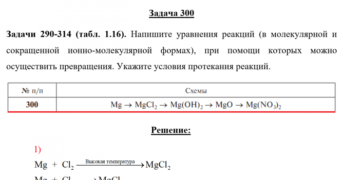 Главная » Учебные материалы » Химия » Решения задач » Несколько классов/семестров » Номер 300 » Задача 300 - Напишите уравнения реакций (в молекулярной и сокращенной ионно-молекулярной формах), при помощи которых можно осуществить превращения. Укажите условия протекания реакций.