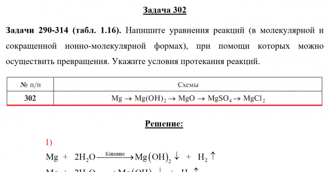 Задача 302 - Напишите уравнения реакций (в молекулярной и сокращенной ионно-молекулярной формах), при помощи которых можно осуществить превращения. Укажите условия протекания реакций.