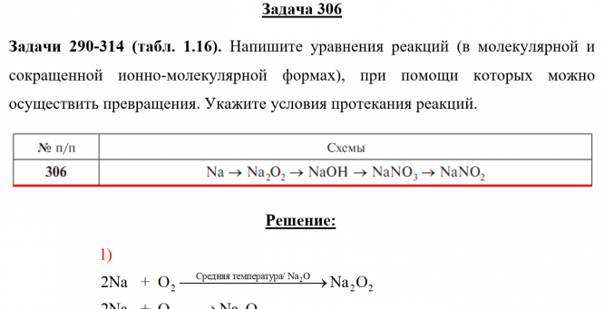 Задачи 290-314 (табл. 1.16). Напишите уравнения реакций (в молекулярной и сокращенной ионно-молекулярной формах), при помощи которых можно осуществить превращения. Укажите условия протекания реакций..