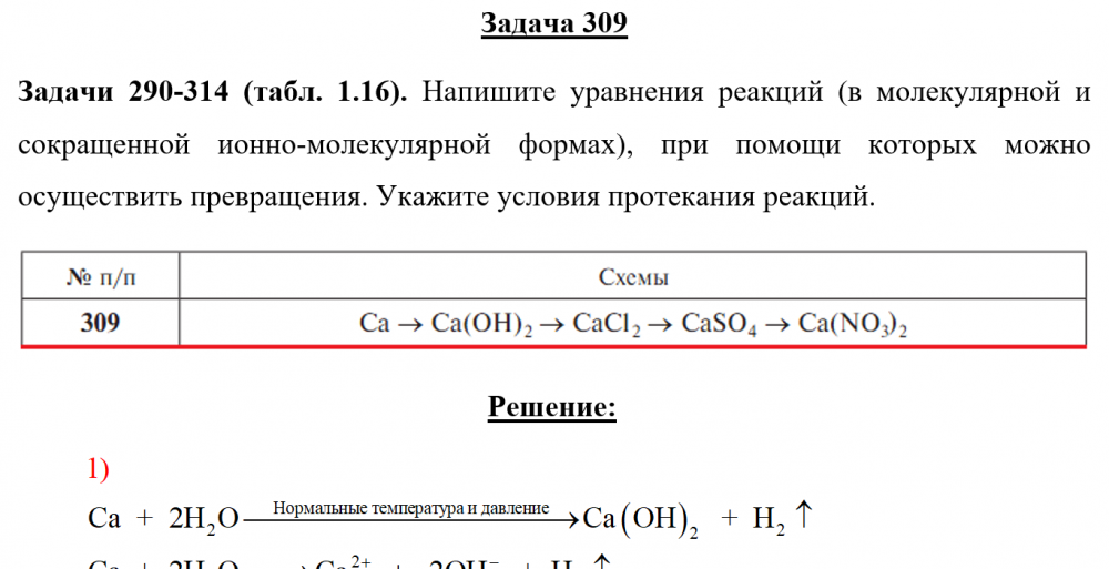 Задача 309 - Напишите уравнения реакций (в молекулярной и сокращенной ионно-молекулярной формах), при помощи которых можно осуществить превращения. Укажите условия протекания реакций.