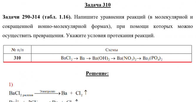 Задача 310 - Напишите уравнения реакций (в молекулярной и сокращенной ионно-молекулярной формах), при помощи которых можно осуществить превращения. Укажите условия протекания реакций.